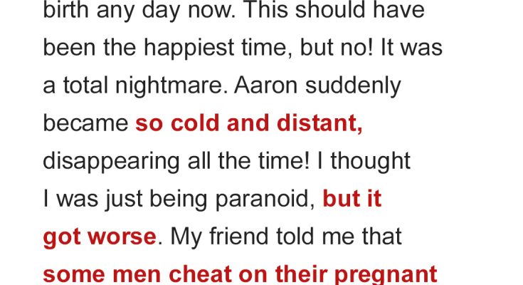 “I’m not cheating. I just… I’m dealing with things. I didn’t want to tell you because you don’t need the stress,” he said, resting a hand on my belly.